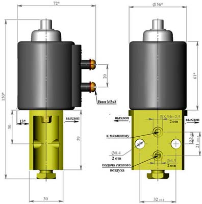 ВВ-1313 вентиль электропневматический - используется для управления потоками сжатого воздуха в пневматических системах.